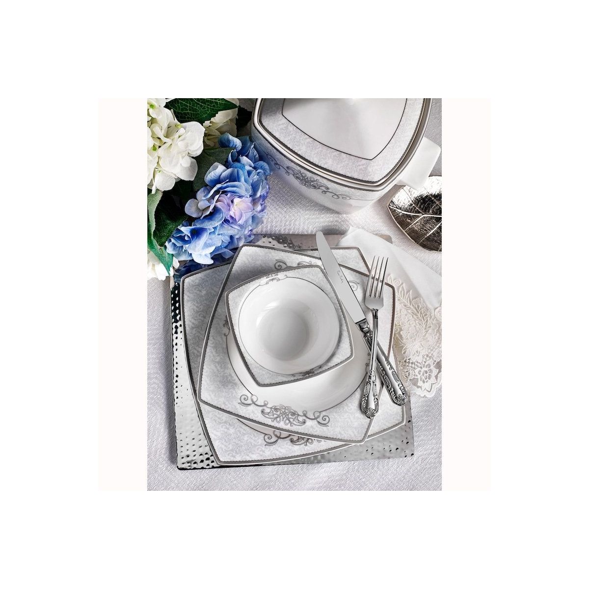 Pierre cardin 24 parça yemek takımı ürünümüzde servis tabağı, pasta tabağı, çukur tabak ve komposto kasesi bulunmaktadır.
